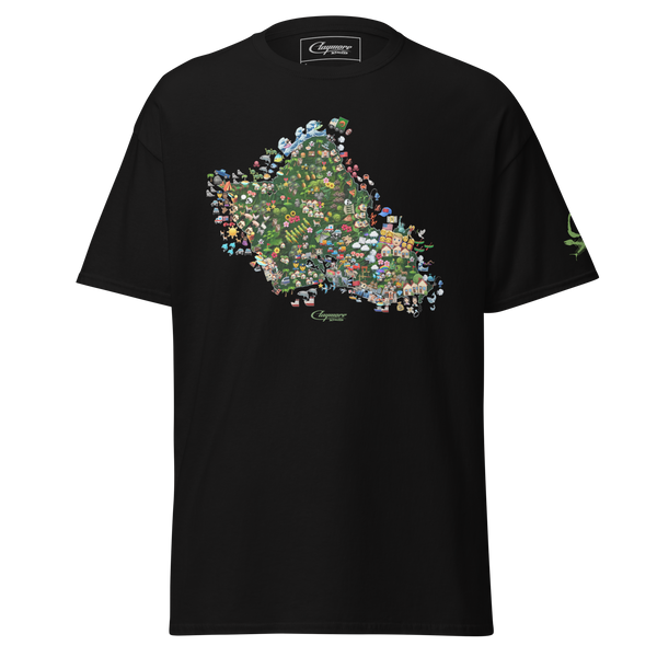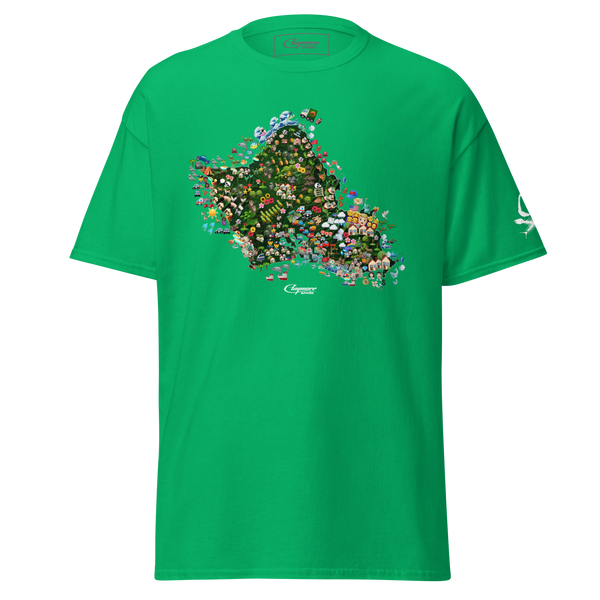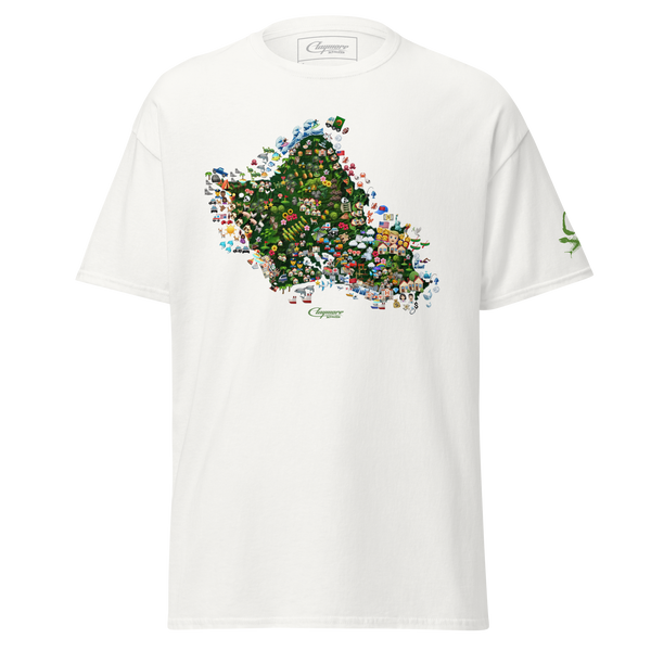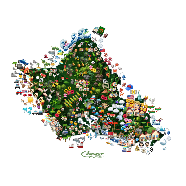 It's not a Claymore Minds Co. capsule without the lead-off t-shirt banger. Prepare to be stopped in public by friends and strangers alike, as they invade your personal space in an attempt to identify each emoji and its relevance to its respective part of the island; this shirt is as interactive as it gets.